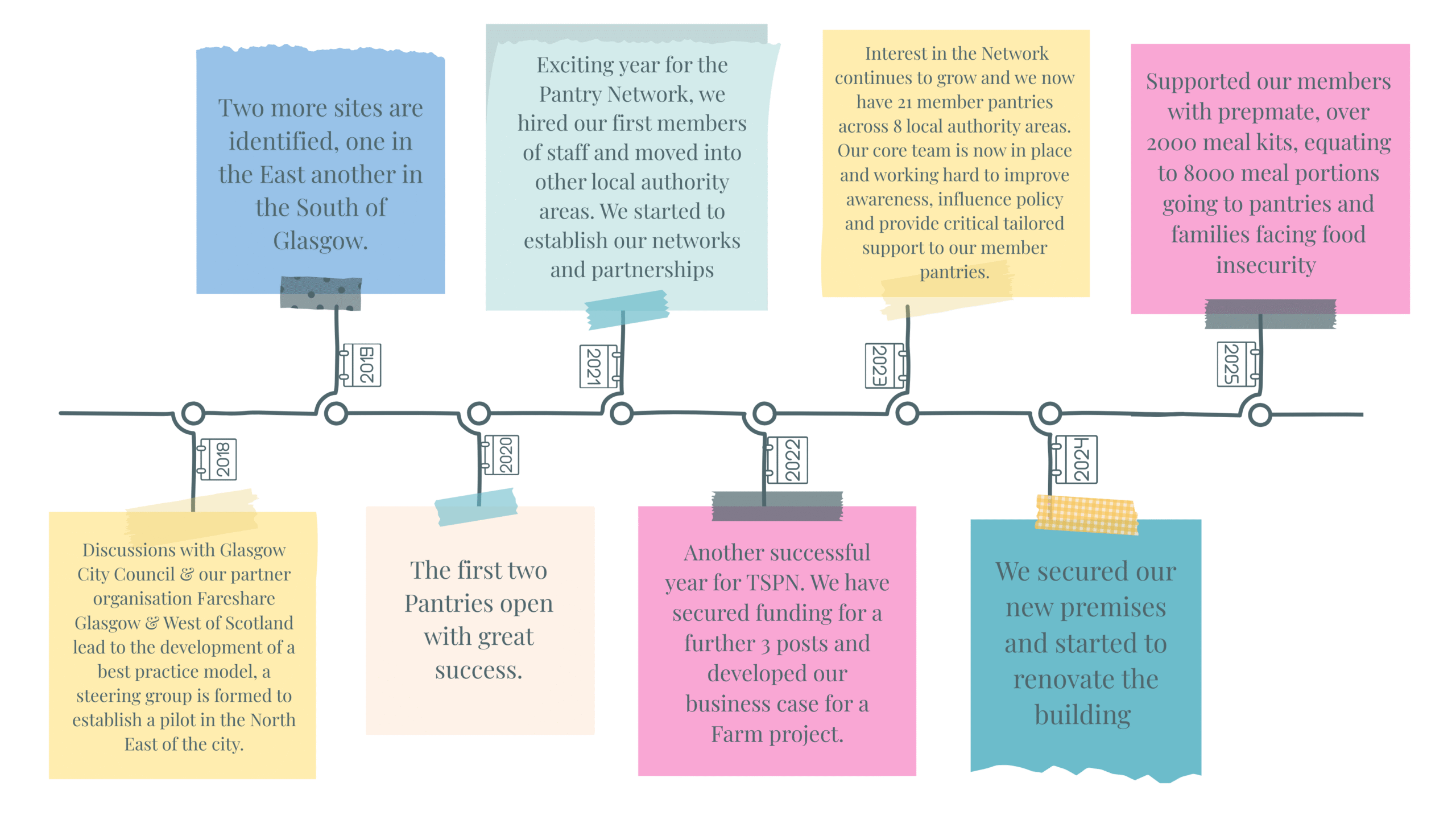 The Scottish Pantry Network will support the pantries by being the collective voice for change, we forge strong partnerships to support the development of the hub model, creating a tailored experience for local communities. The Network will provide ongoing support to the pantries through compliance, lobbying and creating links with food suppliers.